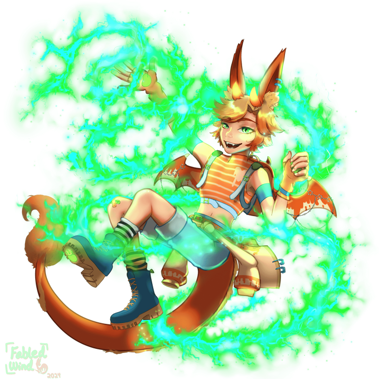 I'm Fable! Twitch streamer, Game Designer, and fire dragon!I love drawing in a more "anime" style, but I can also render very nicely! My art skills are constantly growing the more I draw, so I'm keeping my gallery updated with my most recent works so you always know where my current skills lay.I draw people, dragons, magic, and animals alike! If my ToS doesn't make it clear if I can draw what you want, feel free to ask me. I won't bite!You can contact me through bluesky, email, or discord (@fabledwind) , though I tend to be a bit slower at responding to email.